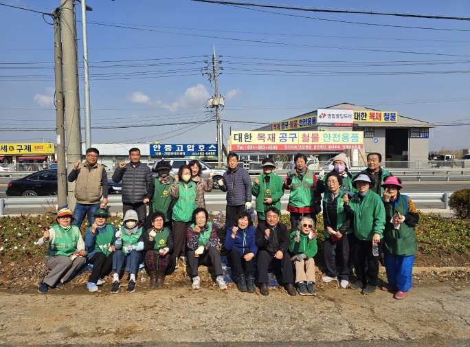 | ▲ 포승읍 새마을남여지도자회, 새봄맞이 꽃 심기 및 관내 대청소 전개 |
