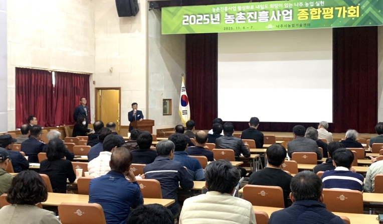 [뉴스앤톡] 전라남도 나주시가 올해 추진한 농촌진흥사업의 주요 성과를 공유하고 향후 발전 방향을 모색하기 위해 6일 농업기술센터 대강당에서 ‘2025년 농촌진흥사업 종합평가회’를 개최했다.