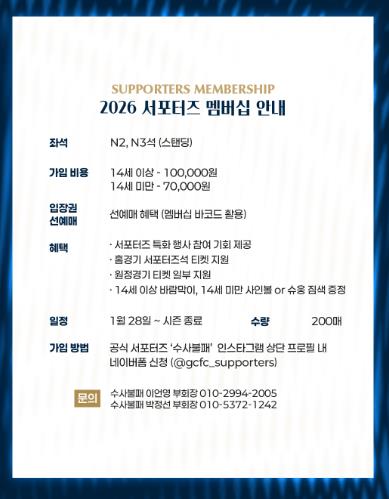 김천상무 공식 서포터즈 수사불패가 1월 28일부터 시즌 종료 시까지 ‘2026 서포터즈 멤버십’ 회원을 모집한다.