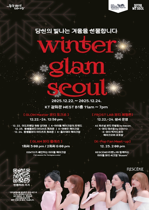 [뉴스앤톡] 서울시가 서울윈터페스타를 찾은 국내외 관광객에게 차별화된 한류 경험을 제공하기 위해 K-뷰티를 주제로 한 ‘윈터 글램 서울(Winter Glam Seoul)’ 팝업 행사를 12월 22일부터 24일까지 3일간 개최한다.