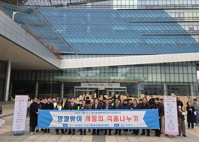 [뉴스앤톡] ㈔성남식품협회(옛 우리식품제조협업인협회)가 설 명절을 앞둔 2월 10일 1억2000만원 상당의 먹거리를 43곳 사회복지시설에 기부했다.