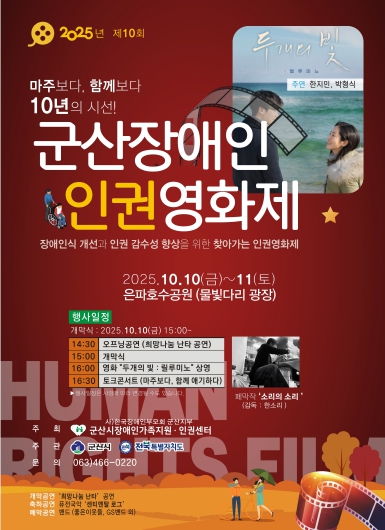 [뉴스앤톡] 군산시 장애인가족지원인권센터가 10월 10일부터 11일까지 은파호수공원 물빛다리 광장에서 군산시민을 대상으로 장애인 인식개선 및 인권의식 함양을 위한 2025년 제10회 군산장애인인권영화제를 개최한다.