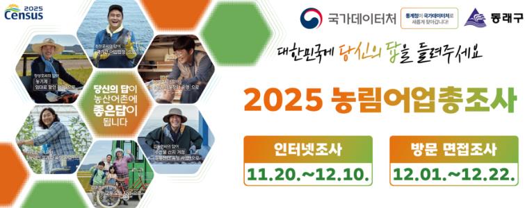[뉴스앤톡] 부산 동래구는 11월 20일부터 12월 22일까지 33일간 ‘2025 농림어업총조사’를 실시한다고 밝혔다.