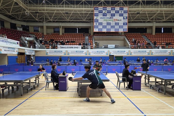| ▲ 2025 스포츠클럽 탁구 교류전 모습(광주빛고을스포츠클럽),전갑수 체육회장 |