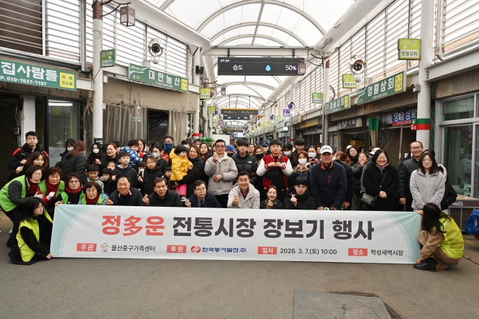 [뉴스앤톡] 울산중구가족센터가 한국동서발전㈜의 후원을 바탕으로 3월 7일 오전 10시 학성새벽시장에서 저소득 가정과 함께하는 ‘정多운 전통시장 장보기 행사’를 진행했다.