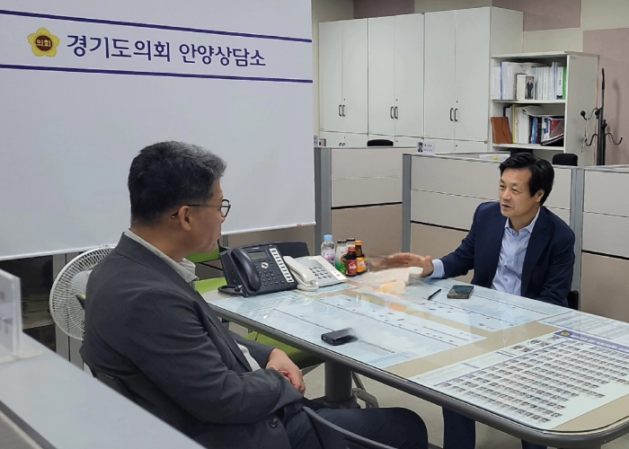 [뉴스앤톡] 경기도의회 문형근(더불어민주당, 안양3)의원은 13일 도의회 안양상담소에서 해당 지역구 운곡공원 생활 체육시설 환경개선 관련으로 안양시 체육과 이인수 체육시설팀장과 함께 면담을 진행했다.