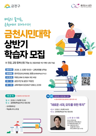 [뉴스앤톡] 금천구는 4월부터 지역 기반 학습 거점과 동(洞) 캠퍼스를 연계한 ‘2026년 상반기 금천시민대학’을 운영한다고 밝혔다. 수강 신청은 3월 3일부터 시작된다.