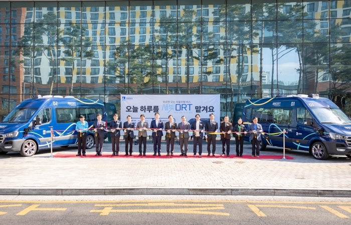 수원시는 27일 수원컨벤션센터에서 ‘새빛 디알티(DRT) 서비스 개통식’을 열고, 자율주행 대중교통 실증사업의 시작을 알렸다. 새빛 디알티(DRT)는 스마트폰 앱으로 호출하면 해당 구간에서 운행하는 자율주행 수요응답형 교통서비스다.