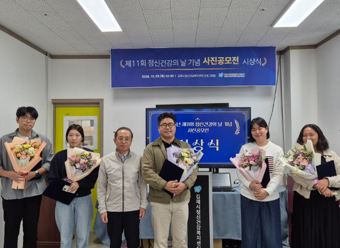 [뉴스앤톡] 김제시는 10월 10일 정신건강의 날을 맞아 정신건강의 중요성에 대한 홍보 및 관심을 고취시키고 정신건강에 대한 인식개선을 도모하고자 제11회 정신건강 사진공모전“마음행복사진관:행복의 계절”을 개최하고 23일 시상식을 개최했다고 밝혔다.