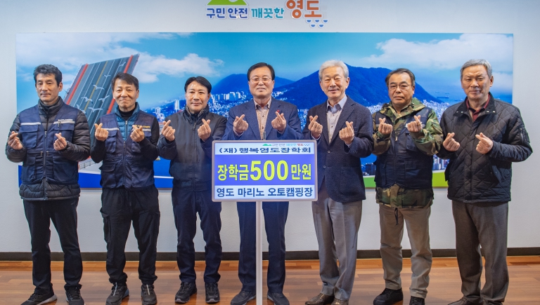 [뉴스앤톡] 영도 마리노 오토캠핑장(기간제근로자 일동)은 지난 12월 19일 영도구청을 방문하여 우수한 지역인재 양성을 위해 (재)행복영도장학회에 500만 원을 기탁했다.