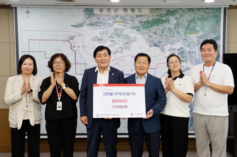 [뉴스앤톡] 옹진군은 지난 25일, ㈜대일유통(대표 박경서)으로부터 지역사회를 위한 나눔활동의 일환으로 쌀 600포(10kg 기준)를 기탁받아 이웃돕기 성품 기탁식을 진행했다고 밝혔다.