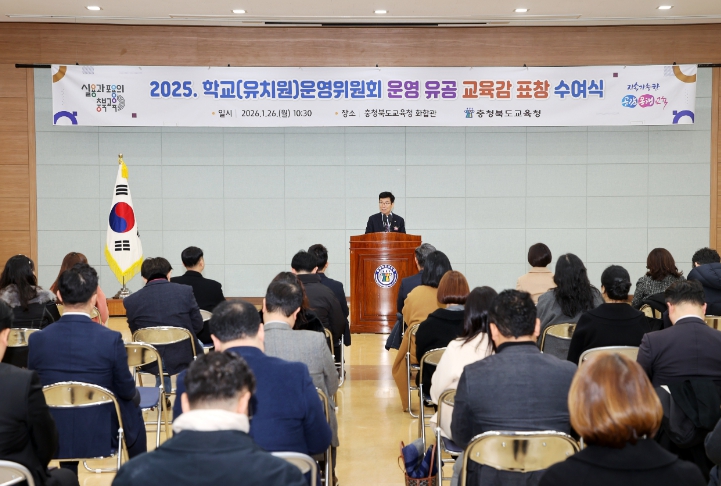 [뉴스앤톡] 충청북도교육청은 26일, 도교육청 화합관에서 '2025년 학교운영위원회 유공자 표창 수여식'을 개최했다고 밝혔다.