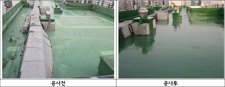 | ▲ 공동주택 공용시설물 유지·관리 지원사업으로 시행된 구로동 옥상방수공사 전·후 사진 |