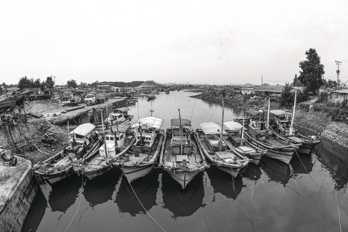 | ▲ 1993년도 안산시 사리포구 전경, 시화방조제 공사 직전의 어촌 풍경 모습 |