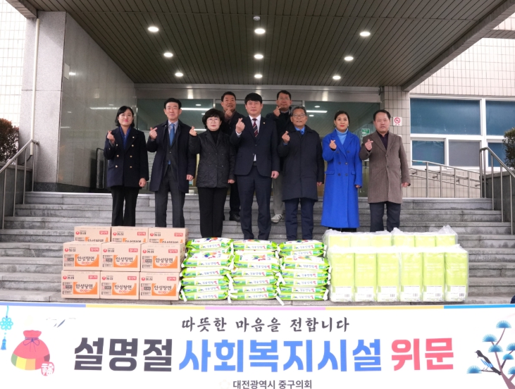 한편, 대전 중구의회는 매년 명절마다 관내 사회복지시설을 정기적으로 방문하여 위문품을 전달하고 있으며, 지속적인 나눔 실천을 통해 지역사회 나눔 문화 확산과 이웃사랑 실천에 앞장서고 있다.