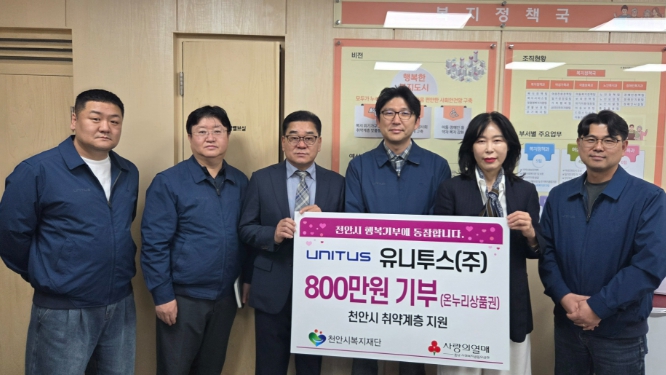 [뉴스앤톡] 천안시복지재단은 3일 유니투스㈜가 온누리상품권 800만 원을 기탁했다고 밝혔다.