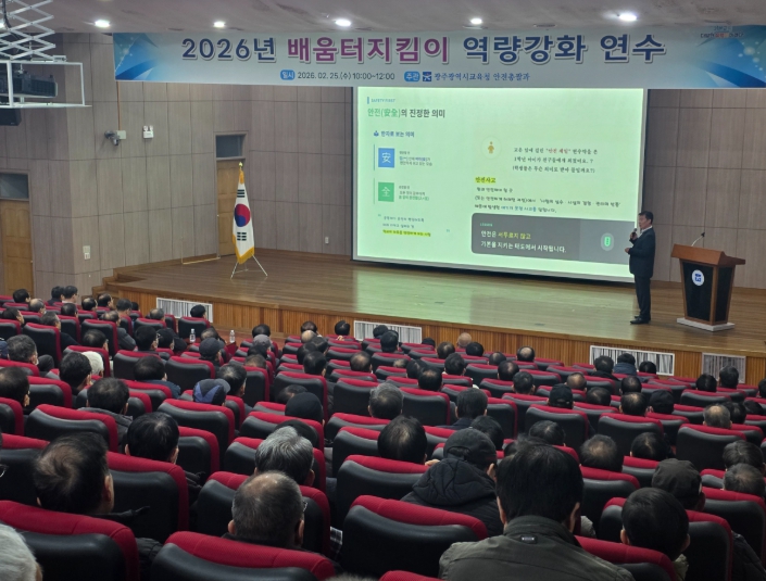 [뉴스앤톡] 광주시교육청은 25일 광주창의융합교육원 대강당에서 학교 배움터지킴이 340여 명을 대상으로 ‘배움터지킴이 역량강화 연수’를 실시했다.