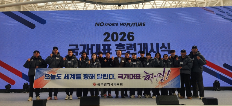 [뉴스앤톡] 광주광역시체육회(회장 전갑수)는 7일 오전 10시 충북 진천국가대표선수촌 벨로드롬에서 열린 ‘2026년 국가대표선수단 훈련개시식’에 전갑수 체육회장 등 임직원이 참석해 국가대표선수들의 선전을 기원하고 광주 소속 선수들을 격려했다고 밝혔다.