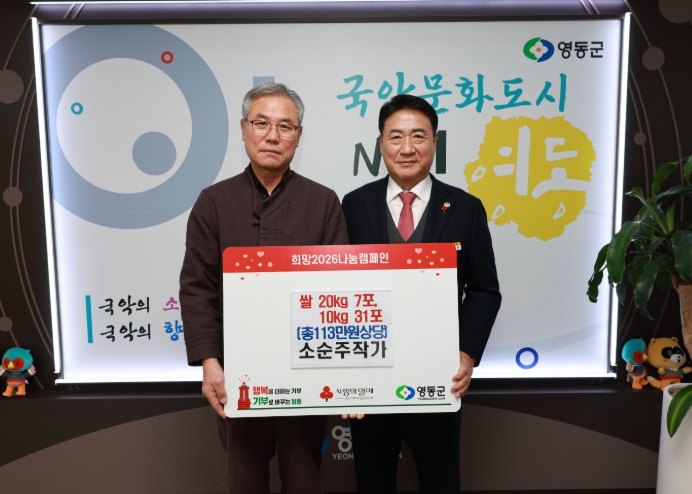 영동군 관계자는 “어려운 이웃을 위한 따뜻한 나눔을 실천해 주신 데 깊이 감사드린다”며 “기탁해 주신 쌀은 복지 사각지대 해소와 취약계층 지원을 위해 소중히 활용하겠다”고 밝혔다.