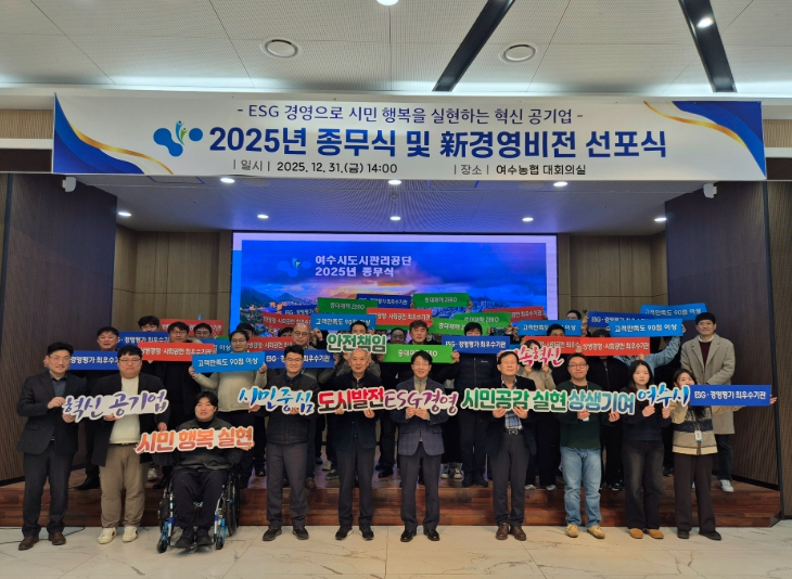 [뉴스앤톡] 여수시도시관리공단은 31일 공단 대회의실에서 ‘新 경영비전 선포식’을 개최하고, 향후 5년간 공단이 나아갈 새로운 경영 철학과 조직 혁신 의지를 대내외에 공식적으로 밝혔다.