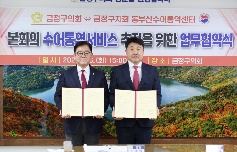 이번 협약은 금정구의회 정례회 및 임시회 본회의에 수어통역 서비스를 도입·운영함으로써, 청각·언어 장애로 의사소통에 어려움이 있는 구민의 알권리를 보장하고 의정활동에 대한 접근성과 참여 기회를 확대하기 위해 마련됐다.
