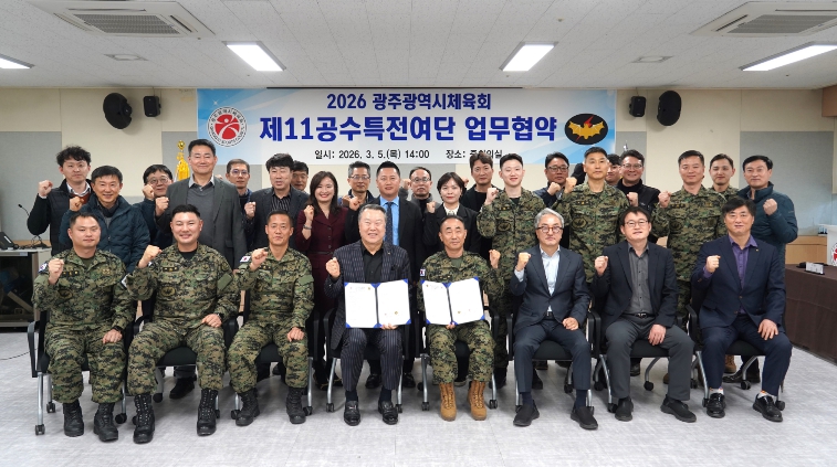 [뉴스앤톡] 광주광역시체육회(회장 전갑수)는 5일 14시 체육회관 2층 중회의실에서 육군특수전사령부 황금박쥐부대(여단장 조웅)과 업무협약을 체결했다고 밝혔다.