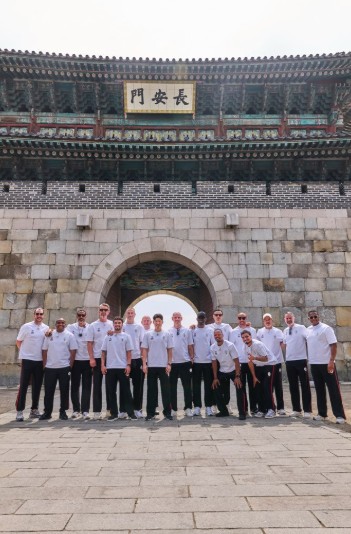 | ▲ 오지에프씨(OGFC) 선수들이 19일 장안문 앞에서 기념촬영을 하고 있다. 사진제공=슛포러브 |