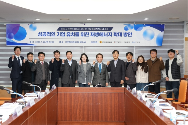 [뉴스앤톡] 전북특별자치도의회 서난이 의원(전주9)은 22일 도의회 세미나실에서 전북지속가능발전협의회, 전북연구원과 ‘성공적인 기업 유치를 위한 재생에너지 확대 방안 토론회’를 공동개최했다.
