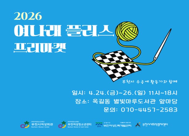 [뉴스앤톡] 부천여성청소년재단이 운영하는 부천시여성회관과 부천여성청소년센터는 오는 4월 24일부터 26일까지 3일간, 옥길동 별빛마루도서관 앞마당에서 지역 여성 수공예 작가들의 작품을 판매하는‘여나래 플러스 프리마켓’을 개최한다.
