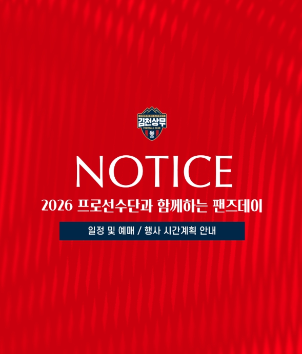 한편, 김천상무는 2월 28일 포항스틸러스, 3월 8일 전북현대를 홈으로 불러들여 홈 개막 2연전으로 2026시즌을 시작한다.