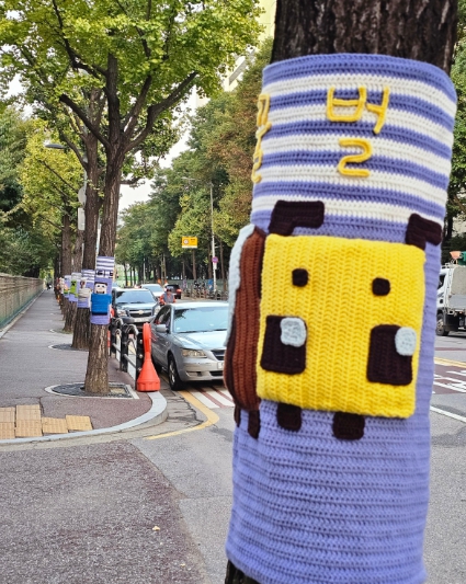 | ▲ 광명시 하안4동 주민자치회는 지난 4월부터 10월까지 직접 만든 뜨개옷을 하담길(하안주공 9·10단지 사이길) 가로수에 입히는 활동을 31일에 진행했다고 밝혔다. |