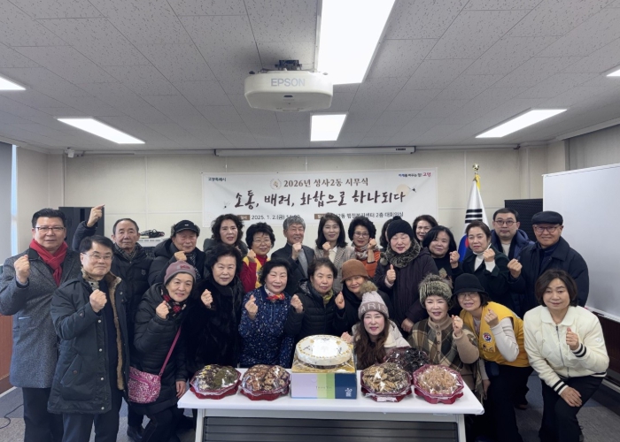 [뉴스앤톡] 고양특례시 덕양구 성사2동 주민자치회는 2026년 병오년 새해를 맞아 지난 2일, 행정복지센터 대회의실에서 ‘소통, 배려, 화합으로 하나 되다.’를 표어를 내걸고 시무식을 개최하며 힘찬 출발을 알렸다.
