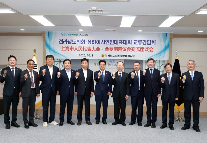 [뉴스앤톡] 전라남도의회는 10월 31일 오전 도의회에서 중국 상해시 인민대표대회 대표단을 공식 접견하고, 양 지역 지방의회 간 우호교류 및 협력 방안을 논의했다.