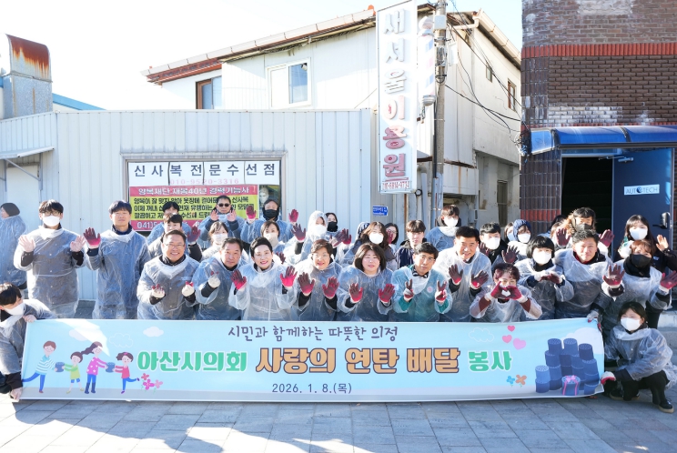 이날 봉사활동에는 아산시의회 의원들과 의회사무국 직원 등 40여 명이 참여해 연탄 400장을 직접 전달하며, 겨울철 난방에 어려움을 겪는 지역 내 취약계층을 지원했다.