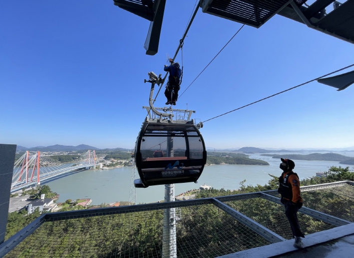 [뉴스앤톡] 가을여행주간을 맞이하여 전남도로 많은 가족단위 여행객들이 방문이 많아지면서 안전에 대한 관심이 높아지고 있는 가운데 명량해상케이블카는 지난 10월 20일 비상상황 대응 능력을 강화하기 위해 진도소방서와 함께 케이블카 합동 구조훈련을 실시했다.