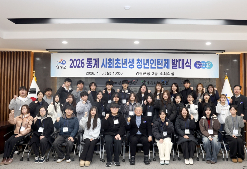 [뉴스앤톡] 영광군은 1월 5일 영광군청 소회의실에서 2026년 동계 사회초년생 청년인턴제 발대식을 개최하고, 참여 대학생들과 함께 근로계약서 작성 및 안전·친절교육 등을 실시했다.
