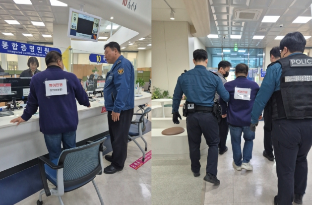 훈련은 폭행 상황을 가정해 ▲비상벨 작동 ▲방문객 대피 ▲피해 공무원 보호 ▲경찰 출동 및 퇴거 등 단계별 매뉴얼에 맞춰 실전처럼 진행됐다.