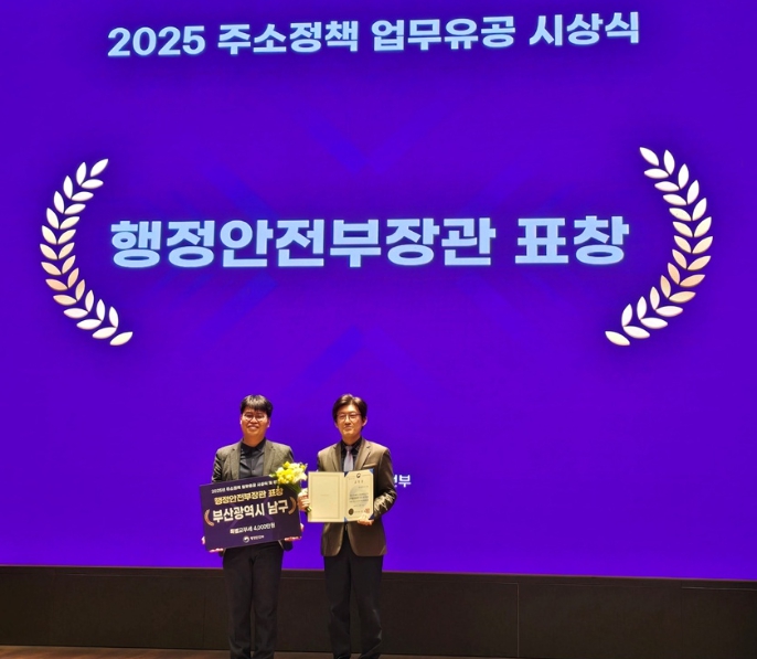 [뉴스앤톡] 부산광역시 남구는 행정안전부가 주관한 ‘2025년 주소정책 업무 유공’ 분야에서 우수 기관으로 선정돼 행정안전부 장관 표창을 수상하고, 특별교부세 4천만 원을 확보했다고 밝혔다.