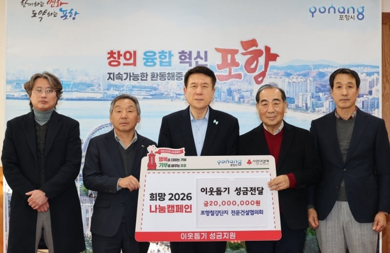 포항철강단지 전문건설협의회는 12일 시청 대외협력실에서 ‘희망2026 나눔캠페인’ 이웃돕기 성금 2,000만 원을 포항시에 기탁했다.