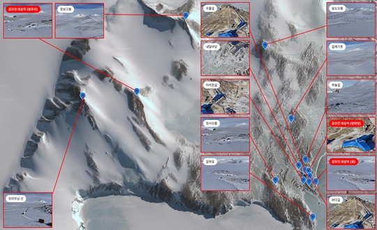 | ▲ 남극 신규 지명 후보지 위치 (16개 지역) |