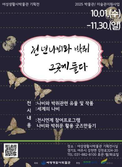 [뉴스앤톡] 여주시에서 진행하는 2025년 박물관·미술관 지원사업의 일환으로 여성생활사박물관의 ‘천년 나비와 박쥐 그곳에 들다’ 전시가 10월 1일부터 11월 30일까지 개최된다.