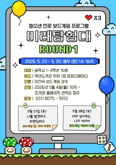 [뉴스앤톡] 고양특례시 덕이도서관은 청소년들이 보드게임을 통해 자신의 적성과 흥미를 발견하고 미래 진로를 설계할 수 있도록 돕는 ‘미래탐험대 ROUND1’을 운영한다고 24일 밝혔다.