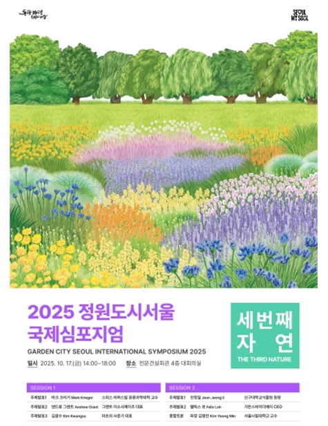 [뉴스앤톡] 서울시는 오는 17일 동작구 전문건설회관 대회의실에서 자연과 도시의 조화와 공존, 정원의 미래 역할 등에 대해 논의하는'2025 정원도시서울 국제심포지엄'을 개최한다. ‘세 번째 자연’을 주제로 정원‧조경 분야의 국내외 전문가들이 한 자리에 모일 예정이다.