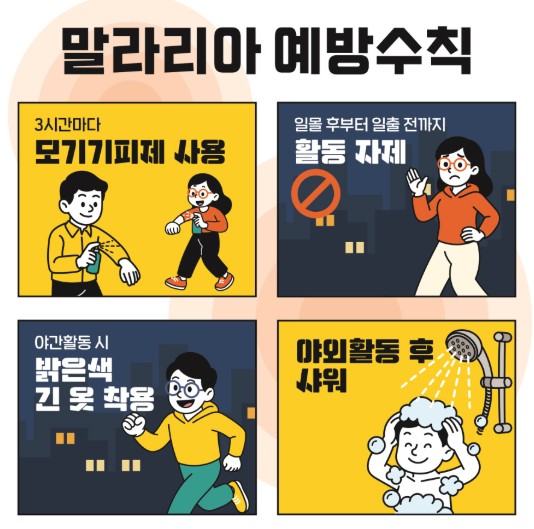 또 발열, 오한, 두통 등의 말라리아 의심증상이 발생하면 즉시 가까운 의료기관에 방문해 진료받아야 한다.