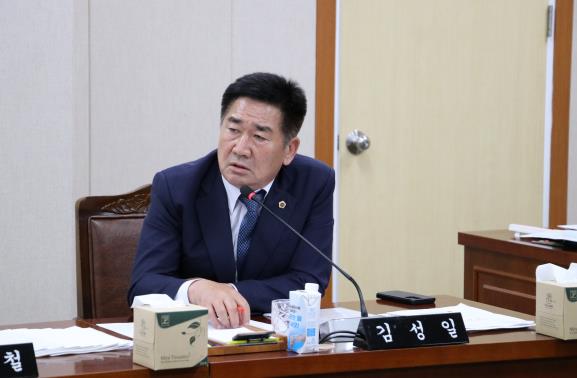 | ▲ 김성일 도의원이 지난 10월 15일 상임위 회의에서 질의를 하고 있다. |