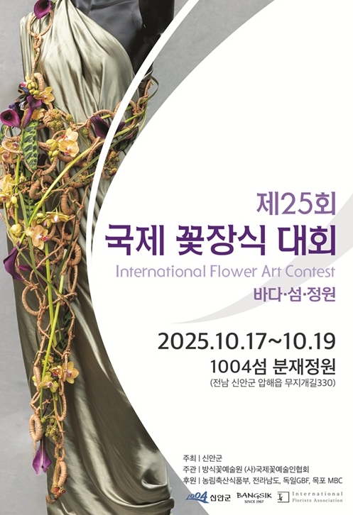 [뉴스앤톡] 대한민국 K-플라워 예술의 중심으로 떠오르는 신안군에서 ‘제25회 국제꽃장식대회’가 오는 10월 17일부터 19일까지 3일간 압해읍 1004섬 분재정원에서 개최된다.