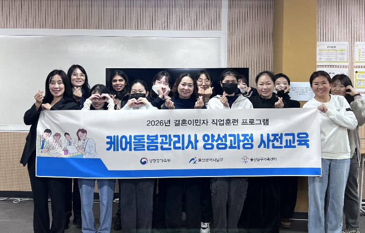 [뉴스앤톡] 울산 남구가 결혼이민자의 안정적인 사회 정착과 경제적 자립을 돕기 위한 전문 취업지원 사업인 ‘2026년 결혼이민자 취업지원(케어돌봄관리사 양성과정)’을 27일부터 본격 시작했다.