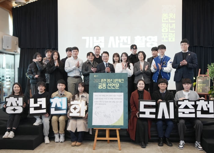 춘천시(시장 육동한)는 27일 커먼즈필드 안녕하우스에서 ‘2026 춘천시 청년네트워크 발대식 및 청년포럼’을 열고 제1기 청년네트워크 위원 30명에게 위촉장을 수여했다.