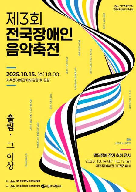 공연에는 제주특별자치도교육청이 운영하는 발달장애인 오케스트라 ‘핫빛 오케스트라’와 시각장애인 소프라노 이정우를 비롯해 다양한 장애예술인들이 참여하고 소리풍경합창단, 제주유스윈드오케스트라, 성지유스오케스트라 등 비장애 예술인 단체도 함께 무대에 올라 ‘경계 없는 무대’를 펼칠 예정이다.