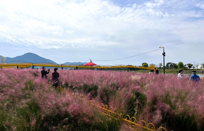 [뉴스앤톡] 장성군 황룡강 가을꽃축제 이튿날인 19일, 강변 곳곳마다 활짝 핀 가을꽃들이 방문객을 반기고 있다. 특히 용작교, 황룡정원 방면 백일홍과 연꽃정원 코스모스, 문화대교 인근 핑크뮬리가 아름답다.